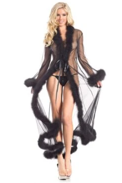 Full-Length sheer robe with marabou feather trim. (Thong not included).