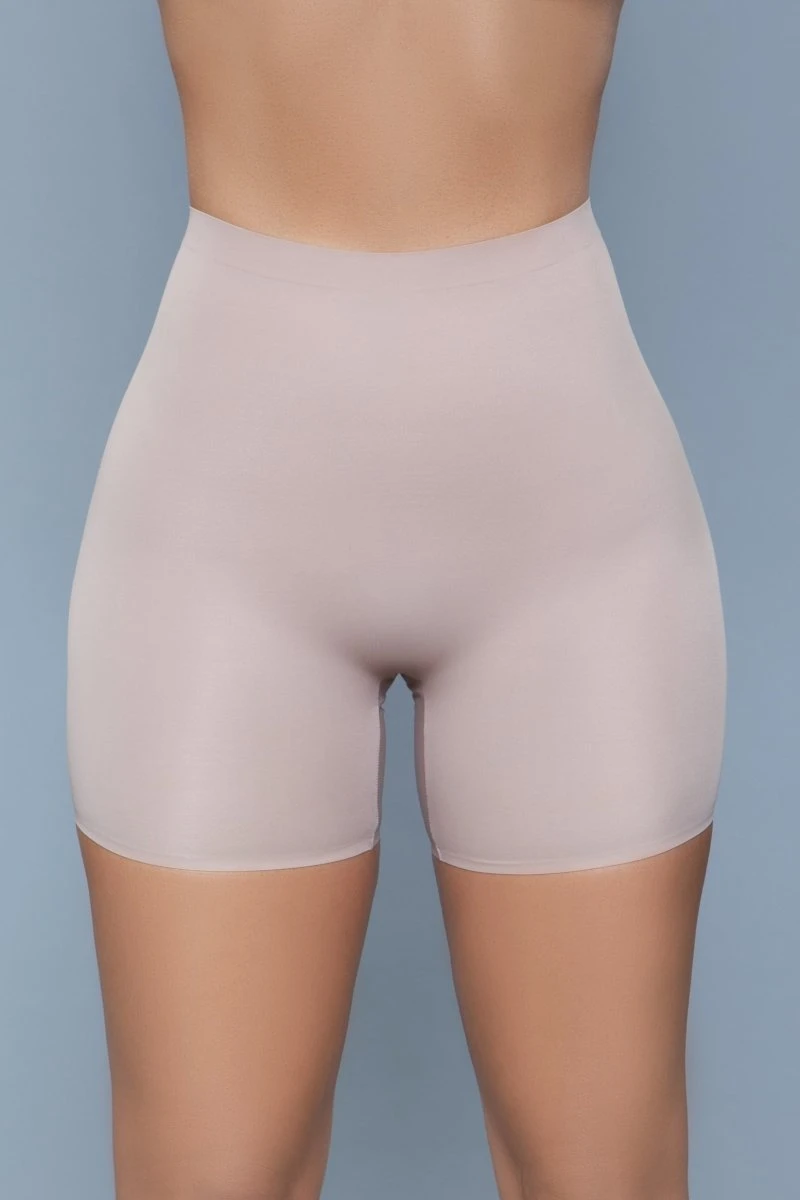Nude seamless mid-waist and anti-chafing slip shorts.