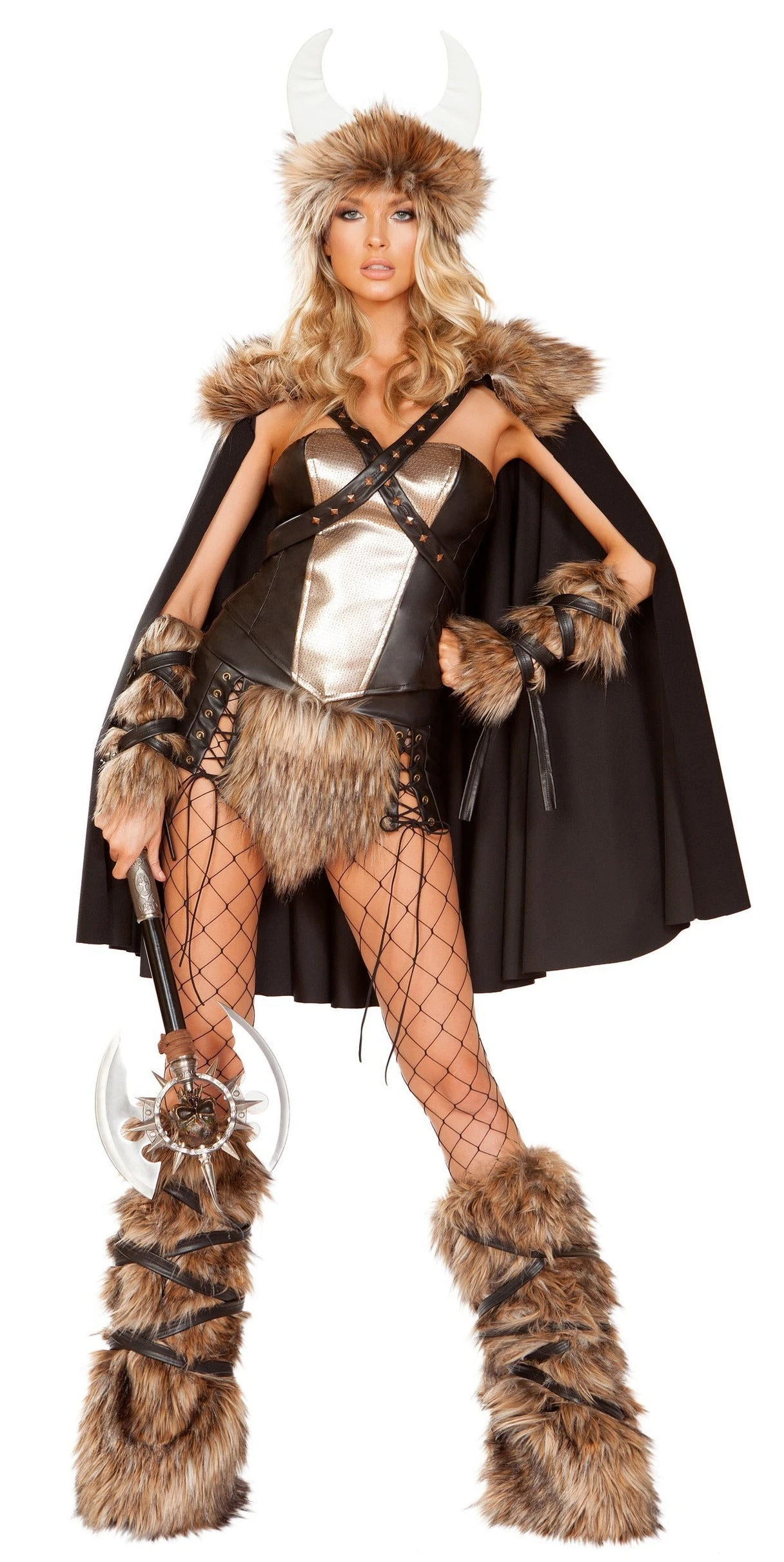 Stud Accents, and Fur Trimmed Headband with Horn Accents.